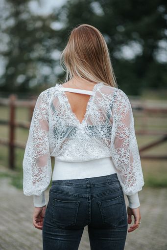 • Achterzijde en mouwen van kant.